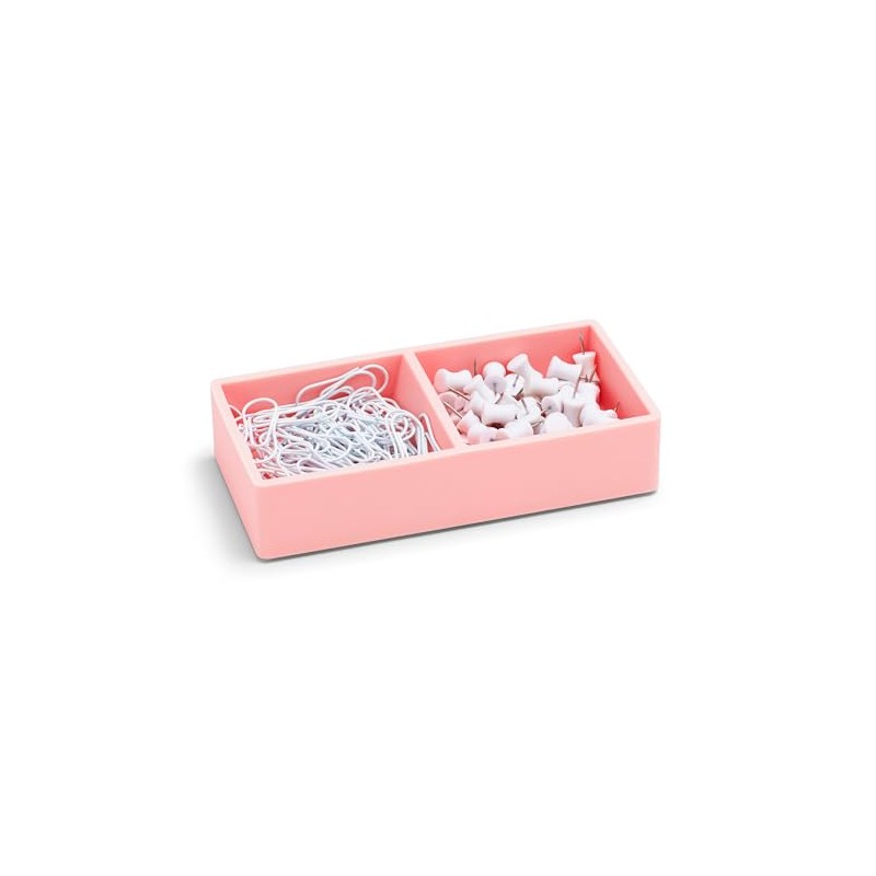 Looking for a spot for those loose desktop doodads? Our Softie This + That Tray keeps small things from getting lost in the shuffle. The divided tray provides simple separation, making sure paper clips and push pins play nice. The silicone design means cats will have a tough time pushing it around; but if it happens to go over the edge, it'll bounce right back.