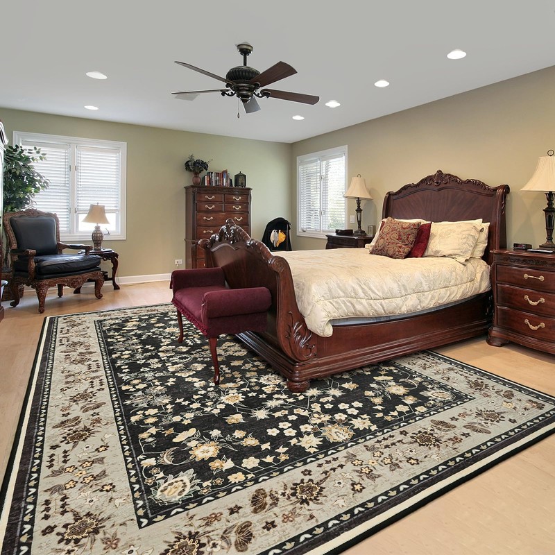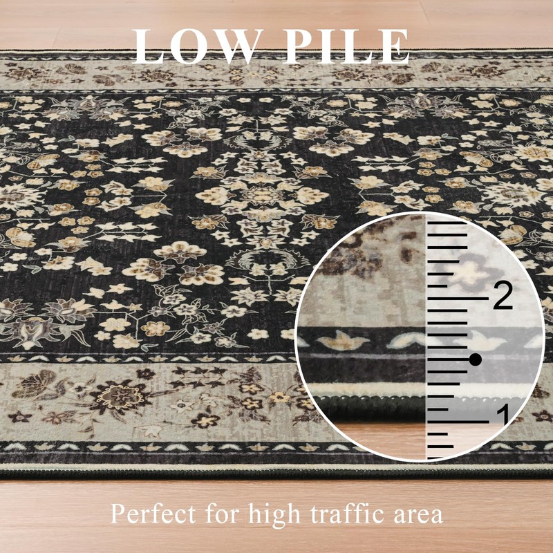 Softlife Washable Rug for Living Room, Black Camel 9x12 Non-Slip Rugs for Kitchen, Oriental Indoor Mat Under Dinning Table, Mordern Print Home Carpets with Rubber Backing for Kids