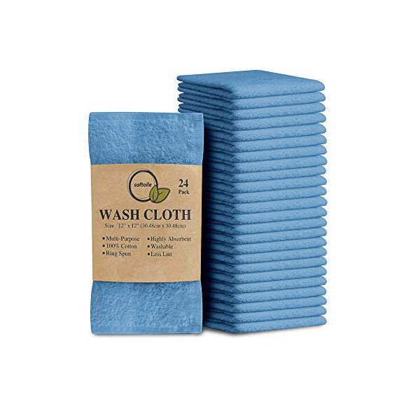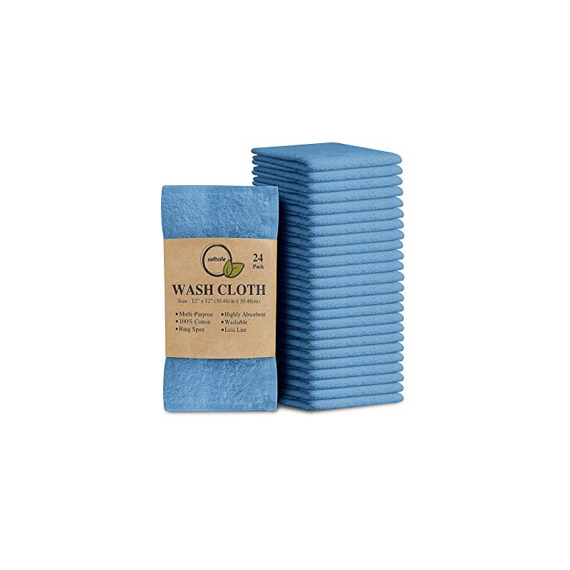 Softolle 100% Cotton Ring Spun Wash Cloths â Bulk Pack of 24 Pieces Washcloths â 12x12 Inches â Wash Cloth for Face, Highly Absorbent, Soft and Face Towels (Sky Blue)