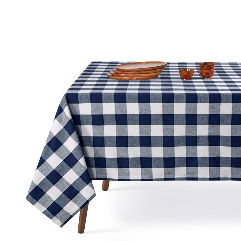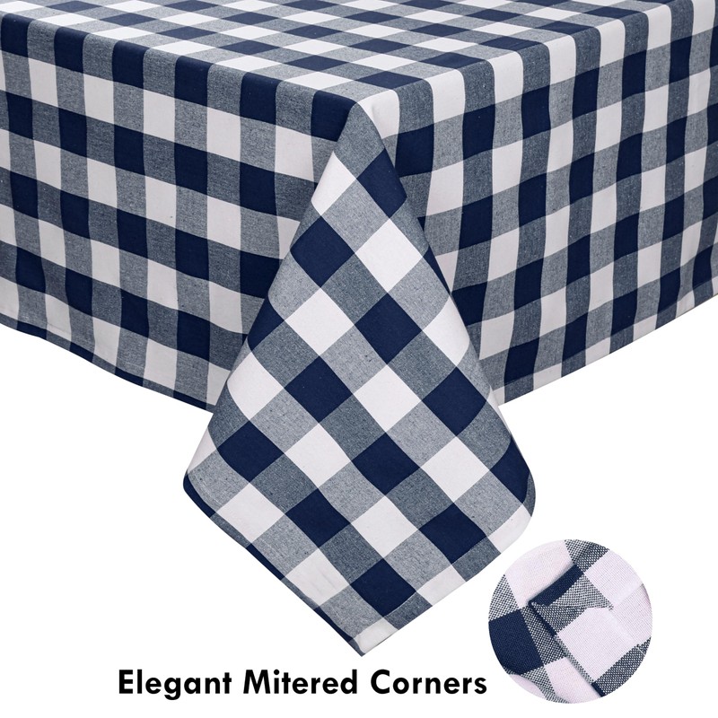 Softopia Cotton Buffalo Plaid Check 60"x84" Tablecloth 100% Cotton Washable Rustic Rectangle Table Cover Decorative for Gifts, Dining, BBQ, Buffet Parties & Camping - Navy