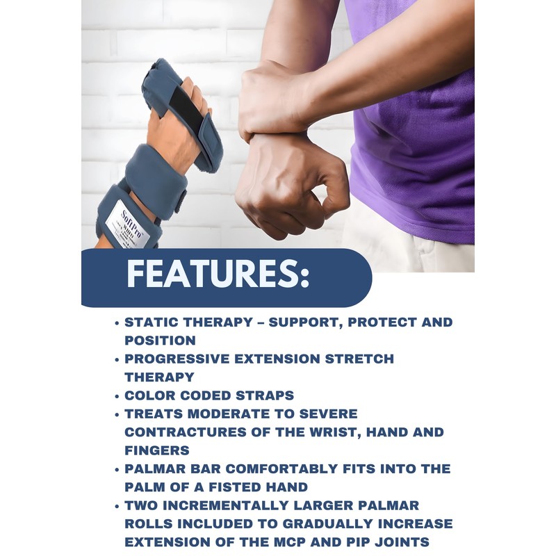 SOFTPRO WHFO Grip Orthosis – Wrist, Hand, Finger Support for Arthritis, Contractures, Deviation – Lightweight, Durable, Bend-to-Fit, Static and Progressive Extension Therapy – Color Coded Straps. Medium Right