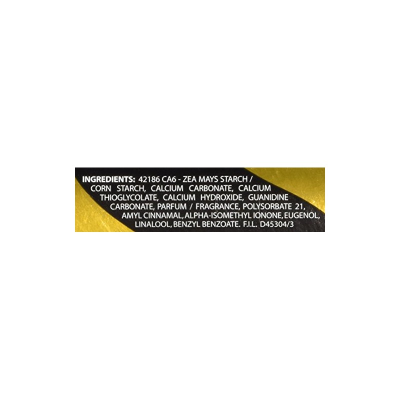 A shaving powder (depilatory) formulated for black men to help stop razor bumps. Provides a clean, razorless shave that lasts up to 4 days. Fresh fragrance. • Razorless shave helps stop razor bumps • Lasts up to 4 days • Fresh fragrance • We believe in beauty without compromise Always read all product labeling and instructions completely prior to use. IMPORTANT: Contains Thioglycolate. If skin is inflamed or has abrasions, sores or pustules, consult dermatologist before use. Conduct sensitivity test before use. Wait 36 hours after using razor, shaving product or depilatory. Do not use with any after shave containing alcohol. Only for removal of facial hair. This is a safety summary. Read all product labeling and instructions completely.
