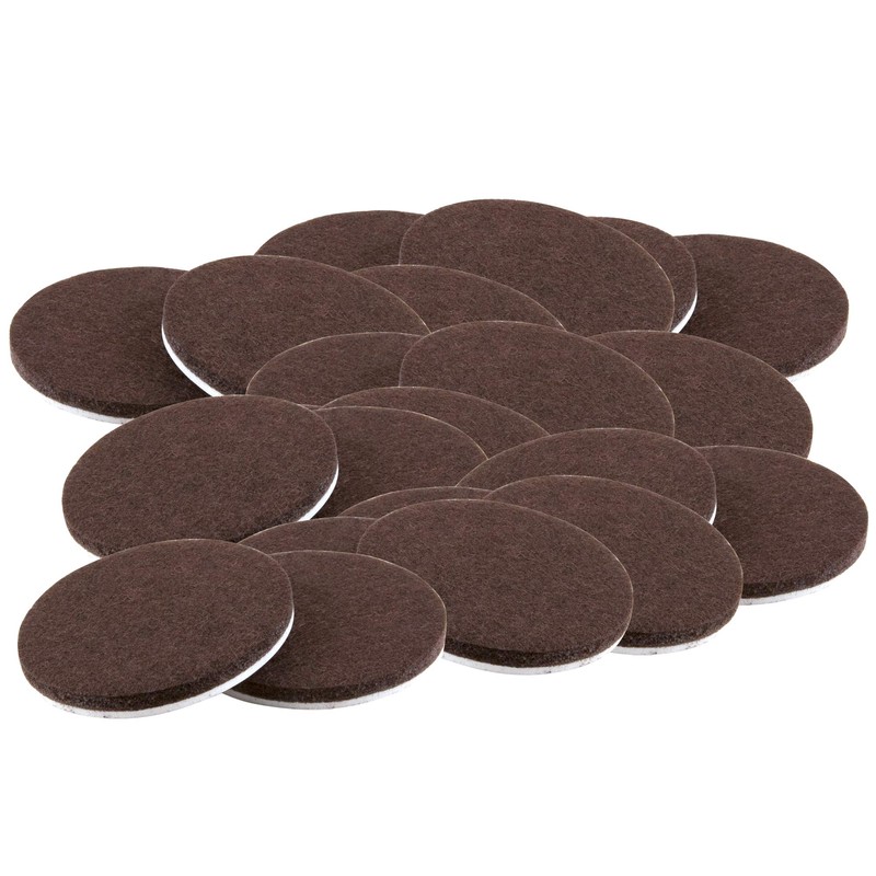 - Pack Includes: (24) 3" round heavy-duty self-stick felt furniture pads, Brown