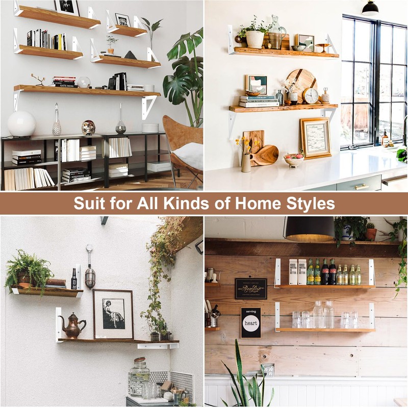 - Three Size Options: Choose from 4", 6", or 8" brackets precisely tailored for different scenarios; arrange aromatherapy candles and bath salts in bathrooms, hang design prints and paint palettes in studios, display keys and décor in entryways; compatible with various shelf thicknesses and applications