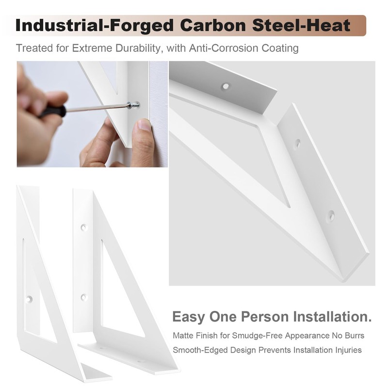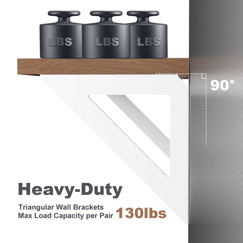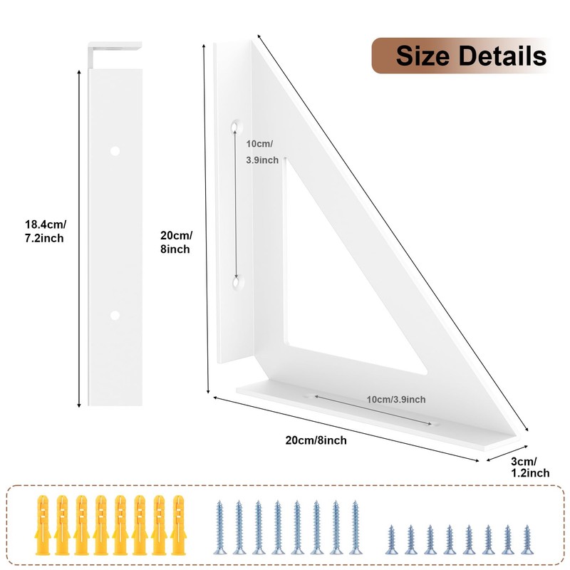 - 90° Triangle Structural Aesthetics: White shelf bracket with perfect 90° angle and equal‑length sides providing rock‑solid concealed support; serves as a spatial sculptor offering exceptional stability and load distribution; ideal for heavy‑duty shelving
