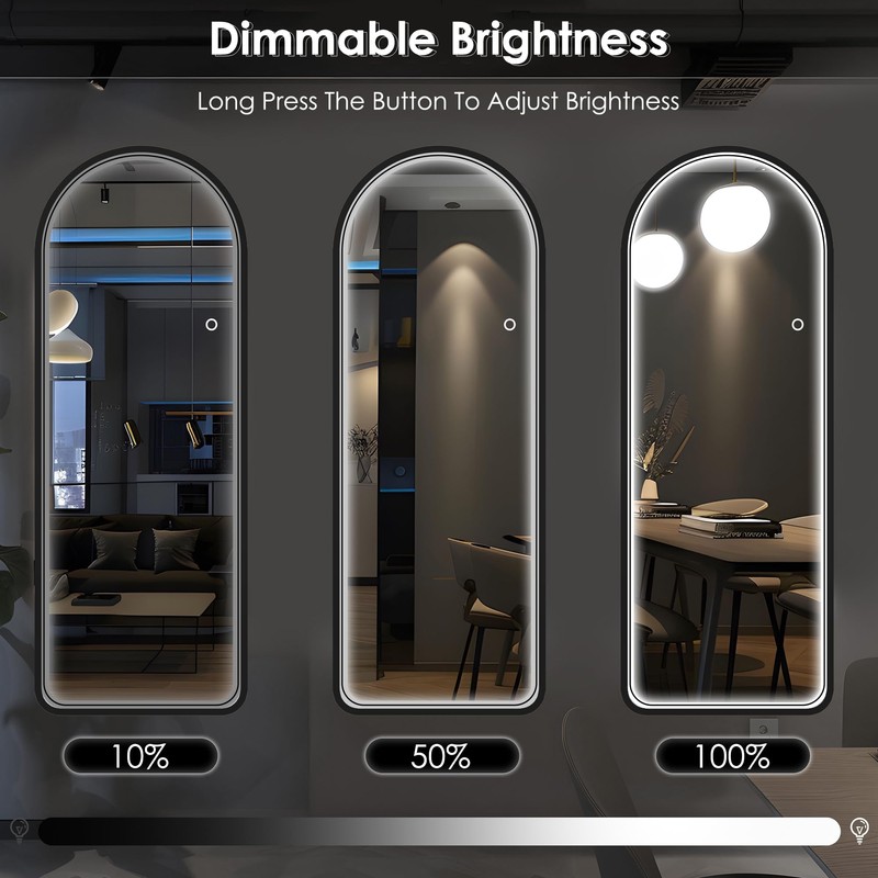 SogeHome Full Length Mirror with Adjustable LED Light, Freestanding Full Length Mirror with Touch Switch, Dimmable Dressing Mirror for Bedroom, Living Room, Black(Circle, Led)