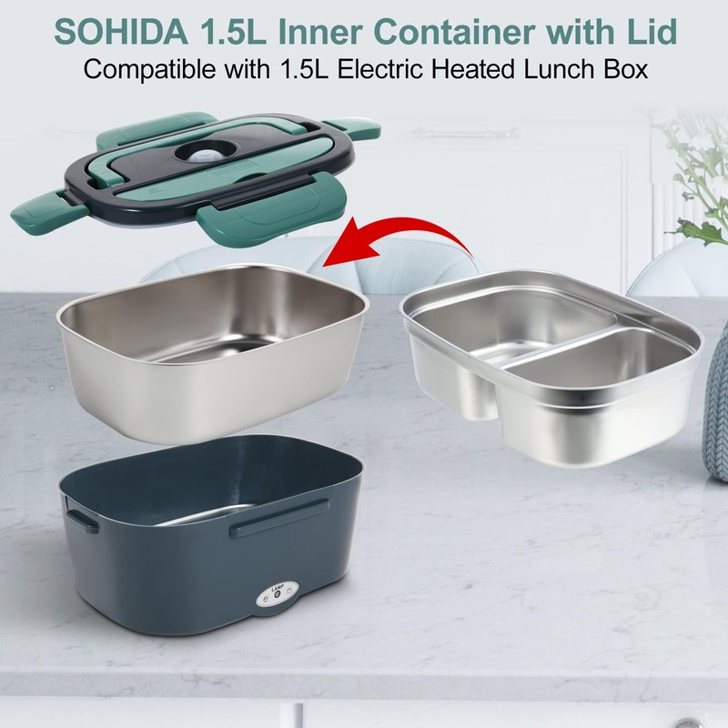 SOHIDA Electric Lunch Box Dual Compartment Container and Lid