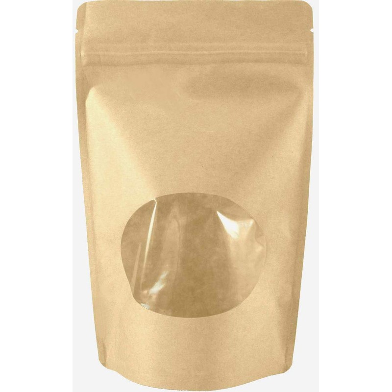 Sohler Natural Kraft Stand up Pouch Bags 5.875"x 9" Resealable with Window and Notch, Zip Lock Food Storage Bag, 100 pcs (Medium - 8 oz, 100 pcs)