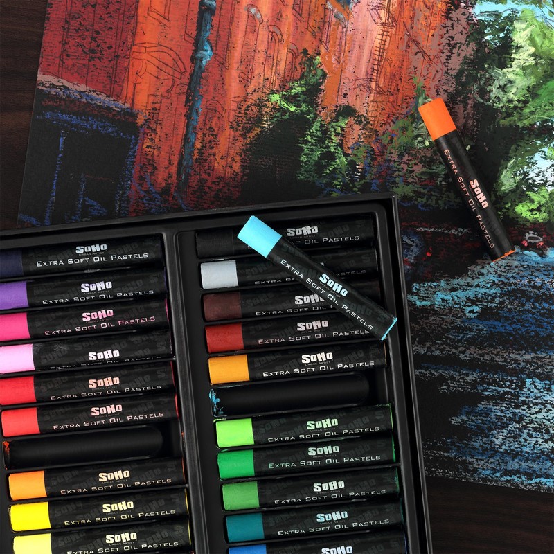 SoHo Urban Artist Oil Pastels 26pc Set - Extra Soft, Blendable, Highly Pigmented and Vibrant, Ideal for Artists, Professionals, Students - Suitable for Drawing, Sketching, Layering, and Scraping