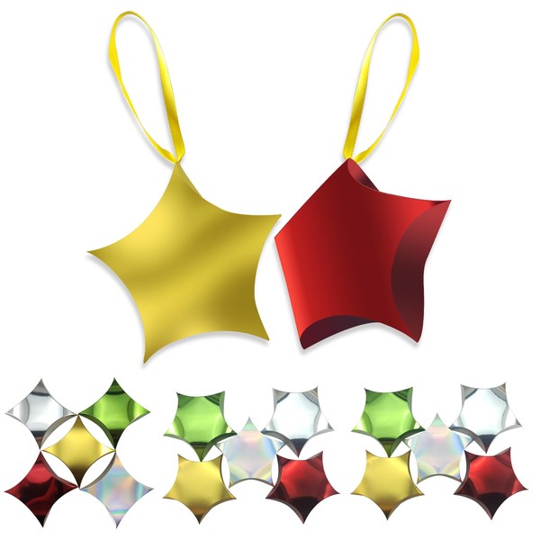 - · Box composition: 2 gold five-pointed stars, 2 silver five-pointed stars, 2 red five-pointed stars, 2 green five-pointed stars, 2 laser five-pointed stars 1 gold four-pointed star, 1 silver four-pointed star, 1 red four-pointed star, 1 green four-pointed star, 1 laser four-pointed star