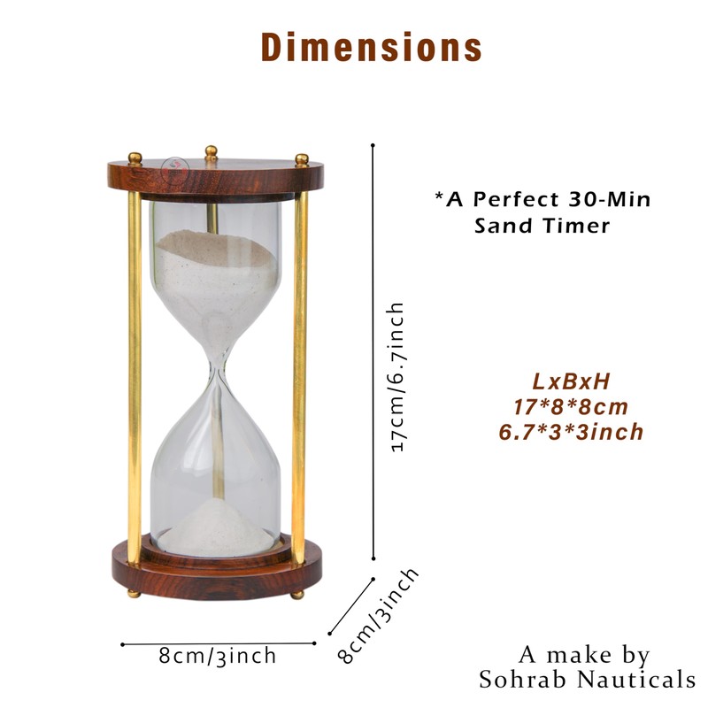Sohrab Nauticals 10 Minutes Wooden Brass Hourglass 10 Minute Sand Timer Sandglass Clock Timer with Sparkling White Sand for Home, Kitchen and Office Table Desk Decorative Item Size - 17x8x8cm
