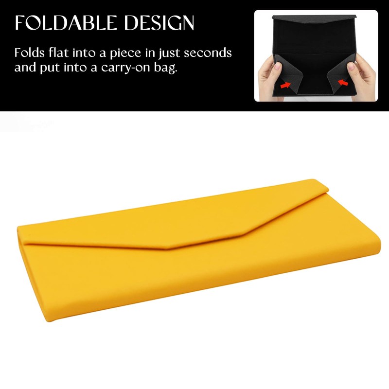 SOHUPAC Foldable Glasses Case With Clean Cloth, PU Portable Sunglasses Case, Magnetic Folding Hard Case Protection (Yellow)