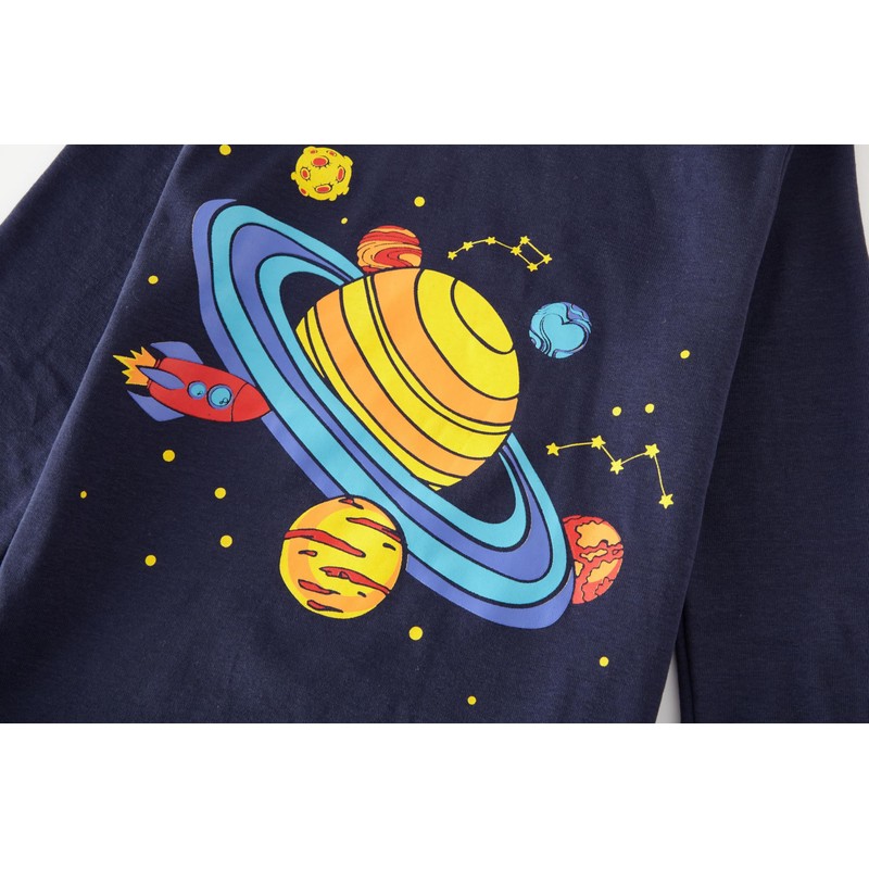 SOIBEEN Pyjamas for Boys Dinosaur Sleepwear Cotton Toddler Clothing Kids Sleepwear Long Sleeve PJs Set 4-Piece Outfit 1-12 Years, 4p-bluegray-planetspace