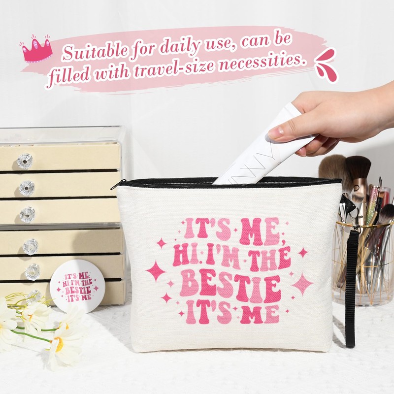 - Unique Design-- The makeup bag is printed with the words 'IT'S ME HI I'M THE BESTIE'. It's a perfect girl gifts to remind your friend or family that she is loved and valued. Your friend is sure to love this fun and thoughtful gift.