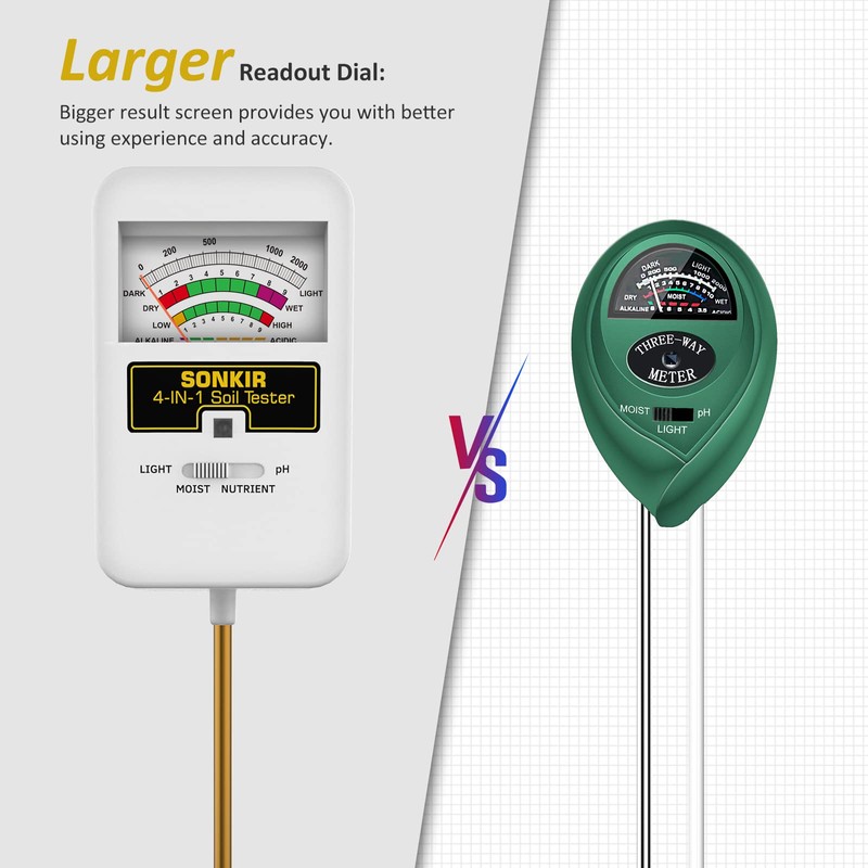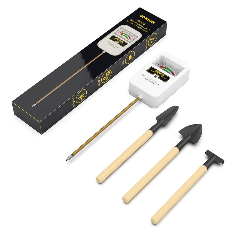 SONKIR Soil Moisture Meter, 4-in-1 Soil Ph Meter, Soil Tester for Nutrients, Moisture, PH and Light, Soil Ph Test Kits for Plant, Great for Garden, Lawn, Indoor & Outdoor Use (No Battery Required)