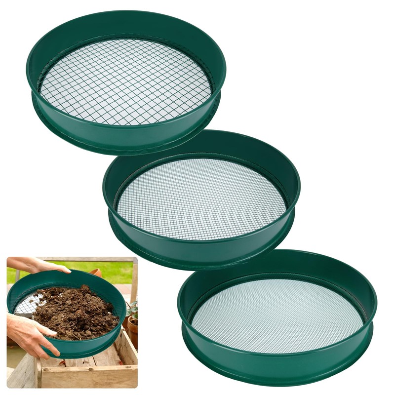 Soil Sifter, 3PCS Soil Sifter Set for Gardening, Stainless Steel Sifter(1/2", 1/4", and 1/8")