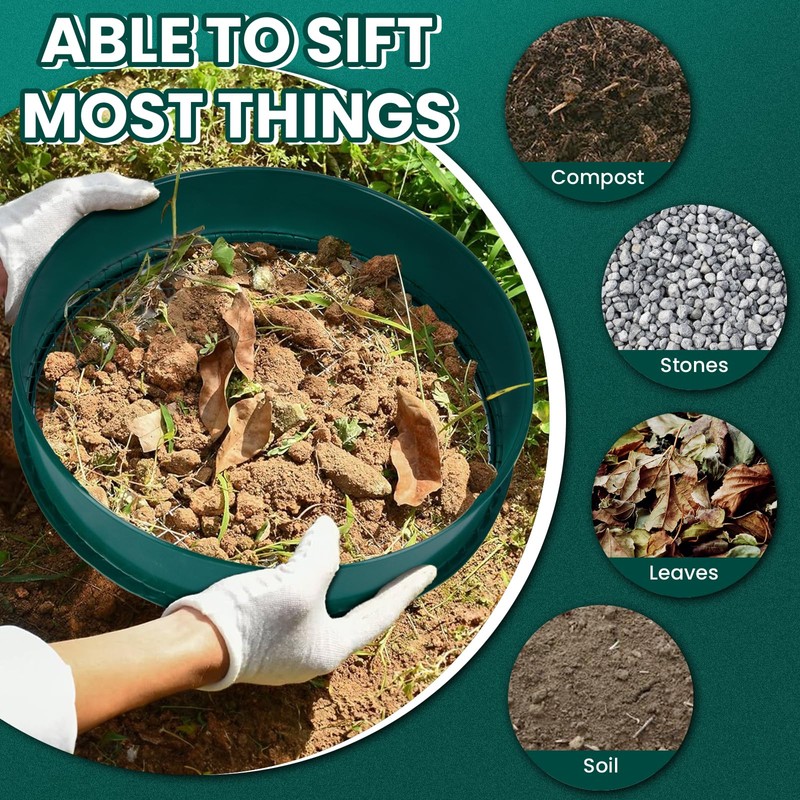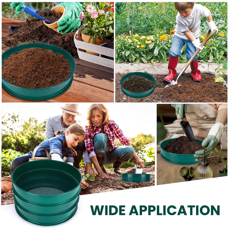 • Multifunction Soil Sifter: The garden sieve soil sifter can be apply to rocks, soil weeds, compost, cat litter, filtration, debris cleaning, bonsai, soil mixing, casting tumbling screening, dirt sifter, sand strainer, fossil sifter, meeting various usage scenarios.