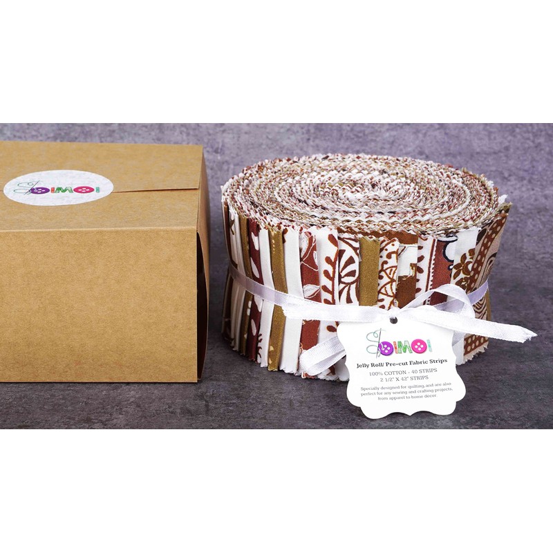 Soimoi 40Pcs Block Print Cotton Precut Fabrics for Quilting Craft Strips 2.5x42inches Jelly Roll - Light Brown