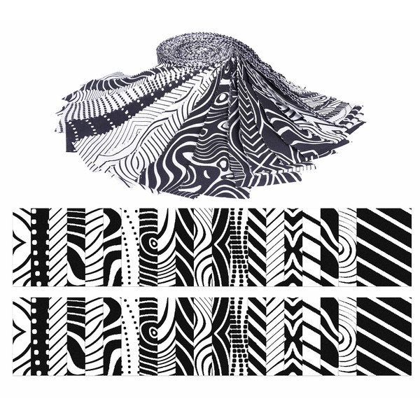 Soimoi 40Pcs Illusion Print Cotton Precut Fabrics for Quilting Craft Strips 2.5x42 inches Jelly Roll - White & Black