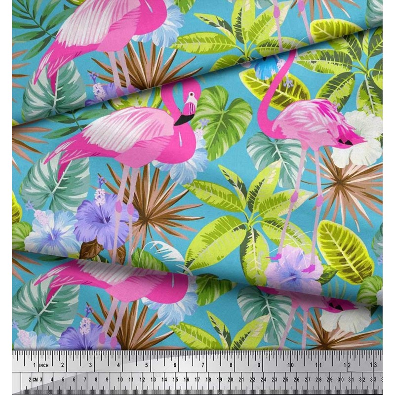 Soimoi Blue Heavy Canvas Fabric Flamingo,Tropical Leaves & Floral Upholstery ...