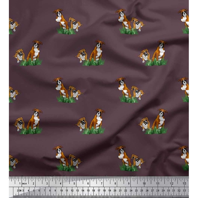 Soimoi Cotton Poplin Fabric Grass & Boxer Dog Print Fabric by the metre 56 Inch Wide