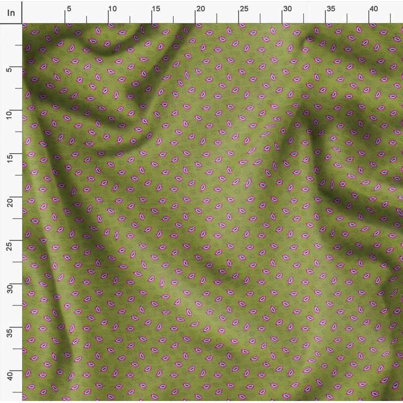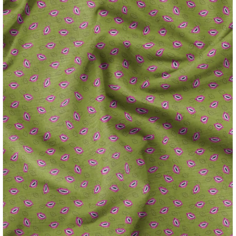 Soimoi Green Cotton Voile Fabric Monster Lips & Teeth Face Print Fabric by the metre 56 Inch Wide