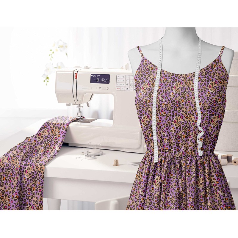 Soimoi Purple Moss Georgette Fabric Leopard Animal Skin Printed Fabric 1 metre 42 Inch Wide