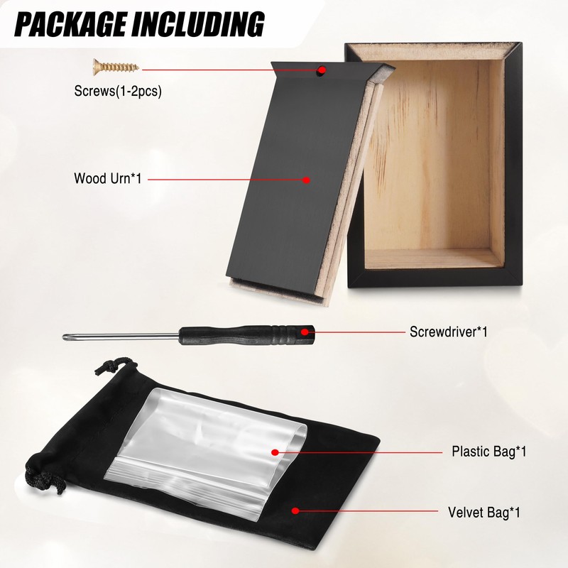 Mini urns for human ashes come with a velvet bag, urn bag, screws, tie and screwdriver, securing safety closure with our Keepsake Urns for Human Ashes to protect your memories forever.