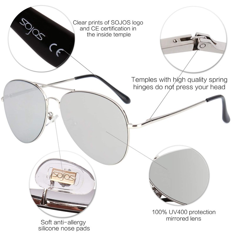 - HIGH-QUALITY MATERIALS – These SojoS vintage aviator sunglasses are made of high-quality metal materials, colorful flash mirrored reflective UV400 lenses, and spring hinges, all the details ensuring you a long time using. These pilot-style sunglasses are suitable for both men and women, and suitable for any climate and weather conditions.