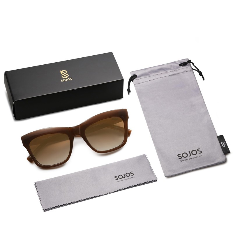 SOJOS Classic Cat Eye Polarized Sunglasses for Women Retro Trendy Bold Rectangular Sunnies SJ2254, Dark Brown/Brown