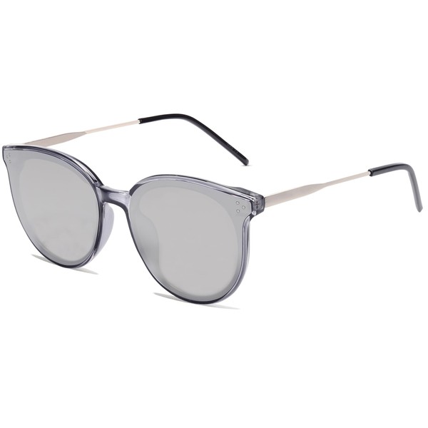 SOJOS Classic Oversized Round Sunglasses Womens Mens Trendy Large UV400 Sunnies SJ2068, Clear Grey/Silver Mirrored