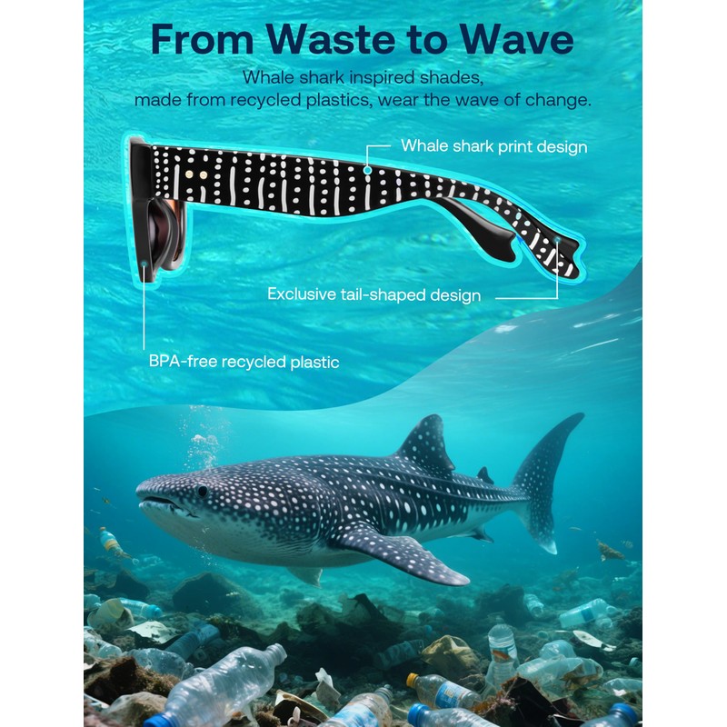 - Eco-Conscious Frames:The classic square frame is made from recycled plastic to reduce ocean plastic waste.