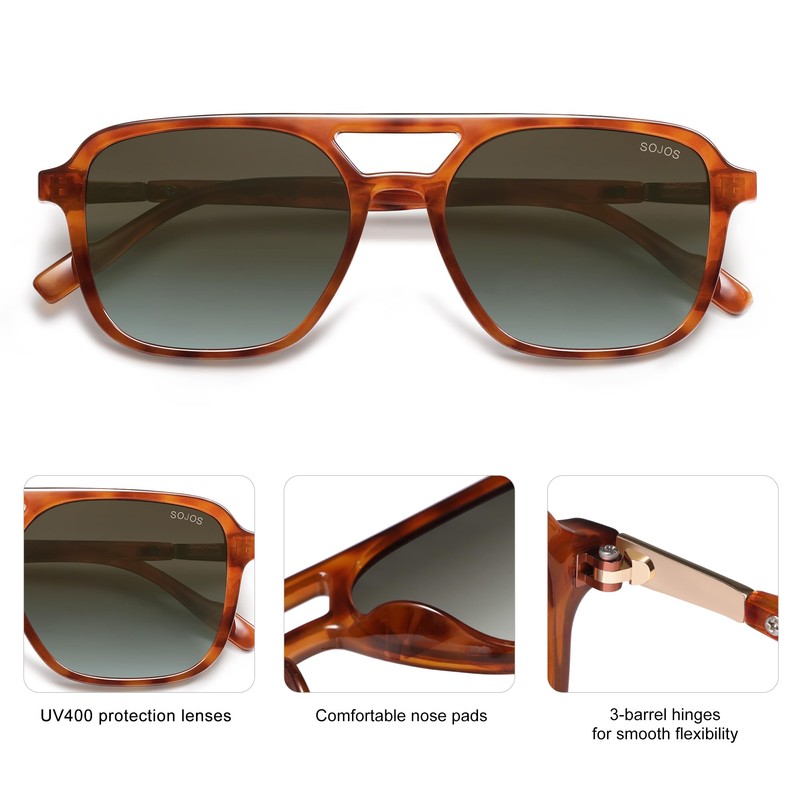SOJOS Retro Aviator Sunglasses for Women Men,Trendy Rectangle Womens Mens Shades Sun Glasses SJ2202 Orange Tortoise Frame Grey Grading Lens