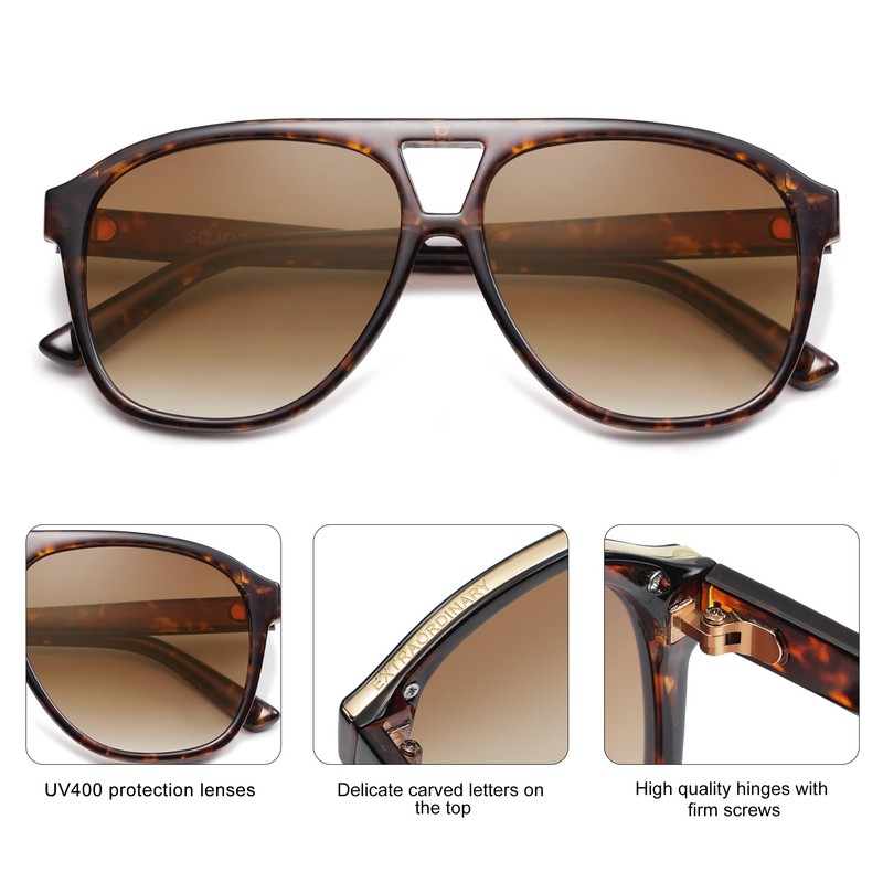 SOJOS Retro Large Aviator Sunglasses for Women Men Classic UV400 Oversized Aviators SJ2315, Brown Tortoise/Gradient Brown