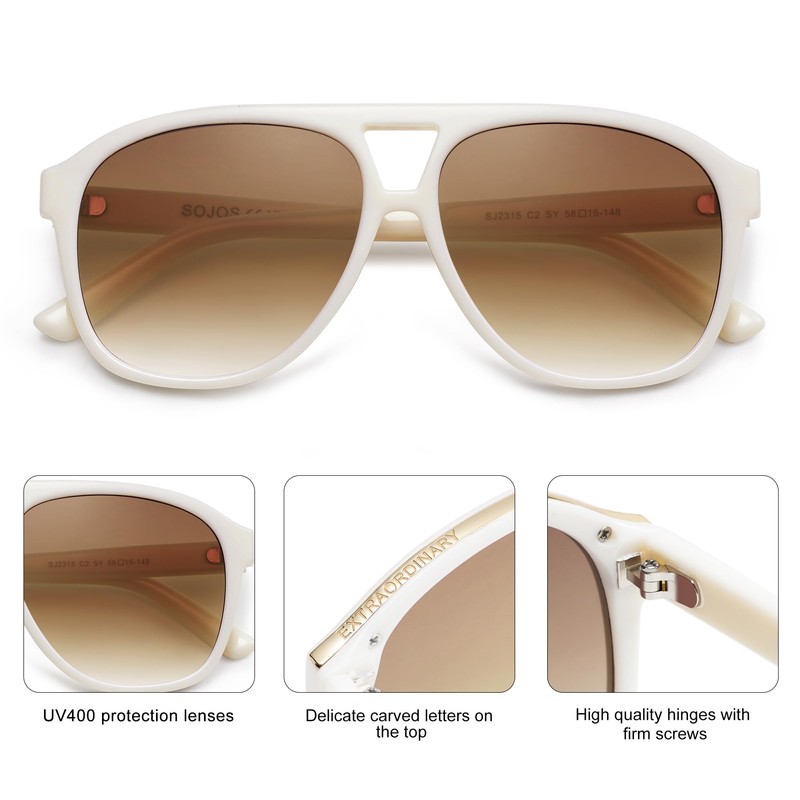 SOJOS Retro Large Aviator Sunglasses for Women Men Classic UV400 Oversized Aviators SJ2315, White/Gradient Brown