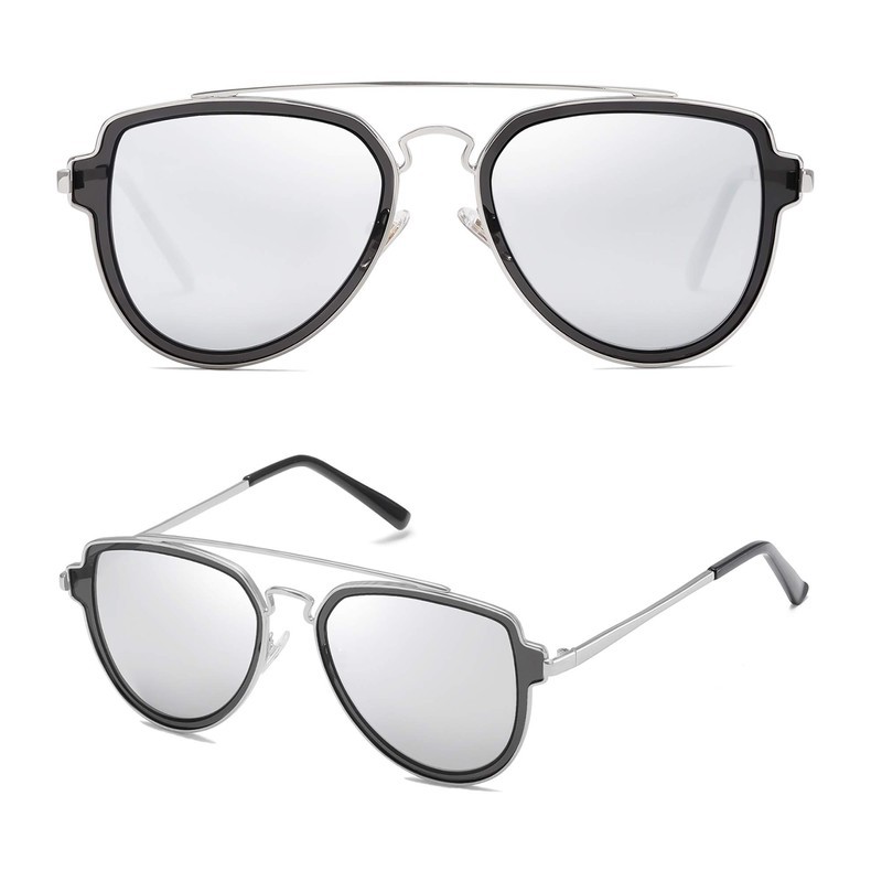SOJOS Retro Polarized Double Bridge Sunglasses for Men Women Mirrored Lens SJ1051 with Silver Frame/Silver Mirrored Lens