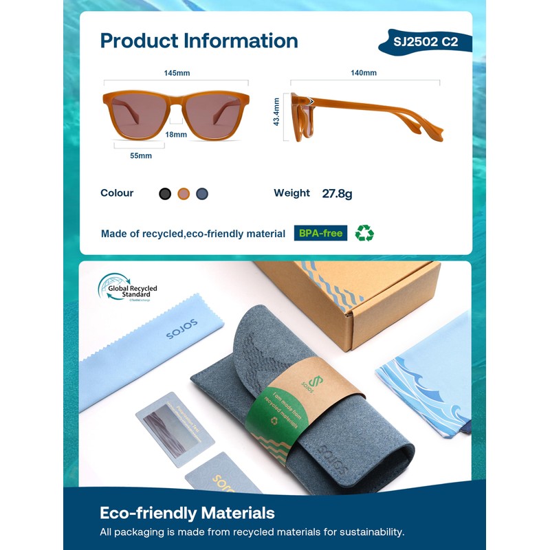 - Eco-Friendly Durable Frames - Crafted from non-toxic, BPA-free recycled plastic, these sunglasses combine sustainability with durability. Ideal for eco-conscious shoppers looking for lightweight, long-lasting frames that don’t compromise on style or comfort.