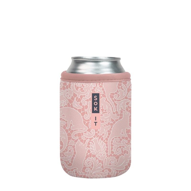 Sok It Can Sok Sleeve for Beer & Soda Insulated Neoprene Cover (Paisley Pink Cats, 12oz Can Sleeve)