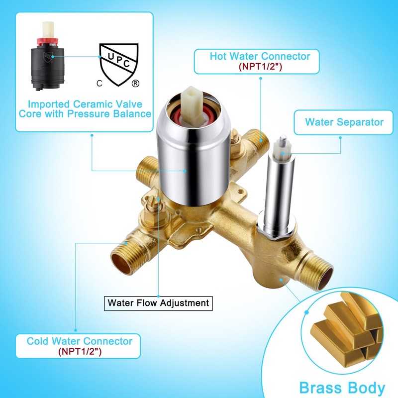 - User-Friendly Installation: Featuring a standard US NPT 1/2 connector, this shower system requires no additional adapters for installation. Clear installation instructions are included to ensure a smooth setup process, making it perfect for replacing your old shower system.