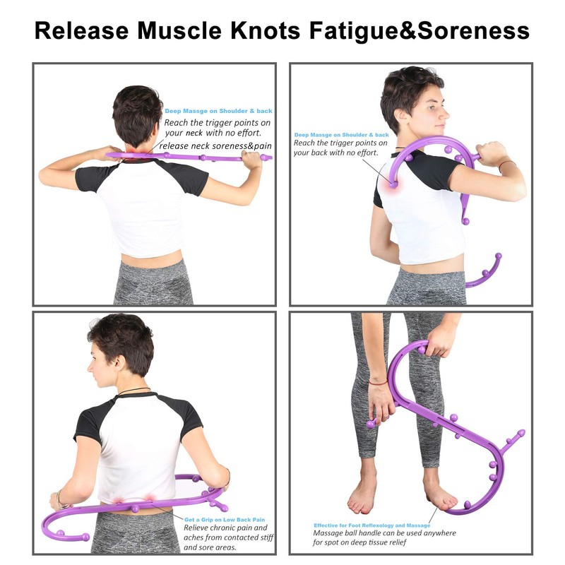 - SELF MASSAGE HARD TO REACH AREAS - There are a myriad of trigger points throughout the body located in the neck, shoulders, back, torso, thigh/hips, legs and feet. This Self massager is designed to help for spasms, periodical or chronic pain, sciatic pain, soreness, fatigue etc. Relieves muscle cramps, sore neck, backaches and much more.