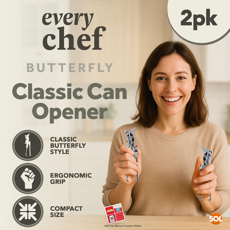 SOL 2pk Butterfly Classic Can Opener – Manual Tin Opener with Traditional Butterfly Design for Easy Opening – Durable Kitchen Tool for Tins, Cans & Food Prep, Compact & Easy to Use