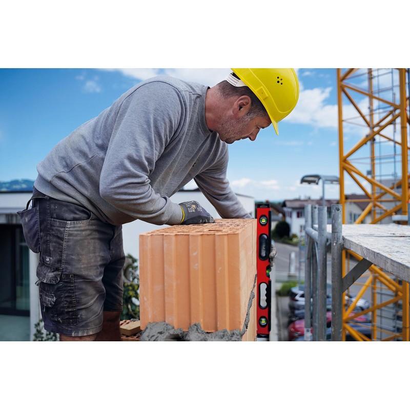- Especially for masons: extra strong aluminum profile with reinforcing ribs and two strike zones to protect the spirit level from the hits of a mason's trowel