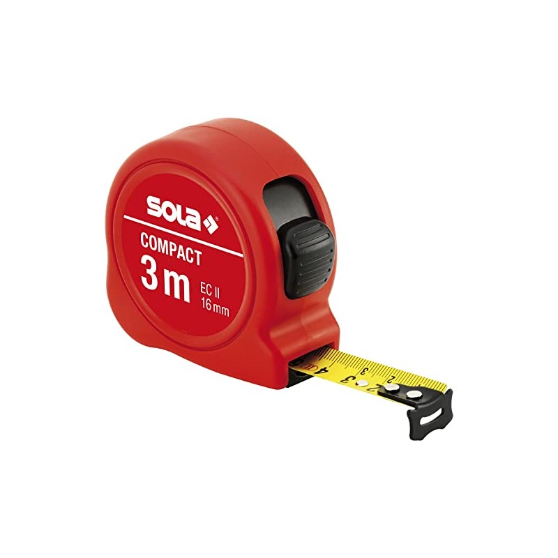 SOLA Compact Roll Tape Measure 3 m with EC Certification Mark Accuracy 2 Red