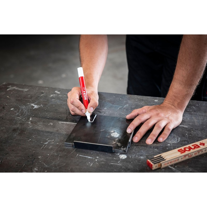 • High coverage thanks to strong pigmentation. The specially developed paint of the white industrial marker provides unmatched coverage on dark, metallic or rough surfaces.