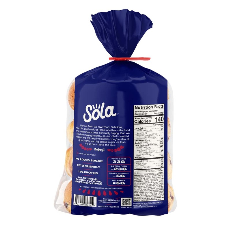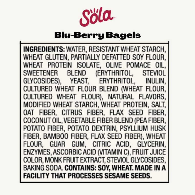 SOLA Low Carb & Keto Friendly Bagels, Blu-berry - 5g Net Carbs & 15g of Protein, No Added Sugar, Plant based, Low Calorie Bagels - 12 oz (4 Bagels/Pack) (Pack of 2)