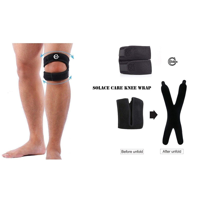 WHAT IS SOLACE CARE RUNNERS KNEE STRAP? It Provides protection, relief and compression for chronic knee pain. Three-way compression targets all around the knee to help relieve chronic knee pain. Adjustable straps ensure personalized fit and compression. Its lightweight design does not compromise mobility.
