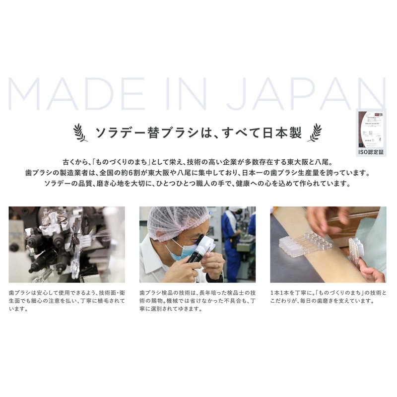 - Soladay Replacement Brushes are all made in Japan: Toosaka and Yao boasting the best toothbrush production in Japan. The Soladay toothbrush was also born here, and we care about quality and comfort, each one is hand crafted by artisans with the heart of health