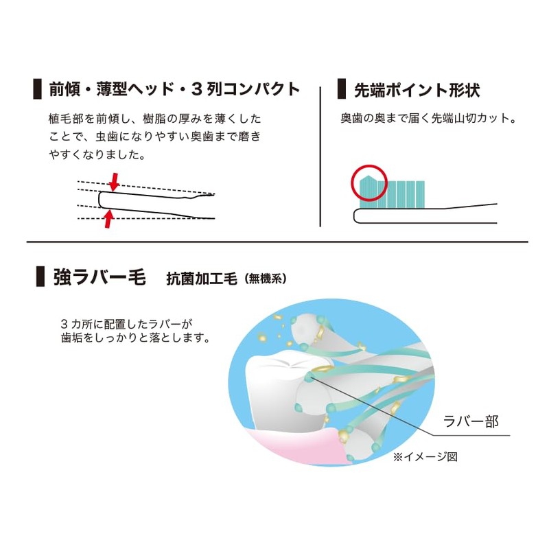 3° forward tilt for ease of polishing: The bristles are now accessible to even the nooks of the tooth. THIN HEAD: 4mm thin head makes it easier to reach the brush deep into your mouth. Slim Shoulders: The corners are reduced and the brush can be easily reached to the deep teeth. Compact head 3 rows of hair rooted types: The tip shape fits perfectly behind the back of the teeth. Removes rubber (rubber) plaque in 3 places within 1 bristle. Recommended for those who have a lot of sticky residue on their teeth Eco Packaging: Made with vegetable ink that uses FSC certified paper vegetable oil and recycled oil. Increased Electronic Transmission: Water and light are more efficient. Better polishing More comfortable 10 types of Soladay series to choose from with a focus on ease of polishing.