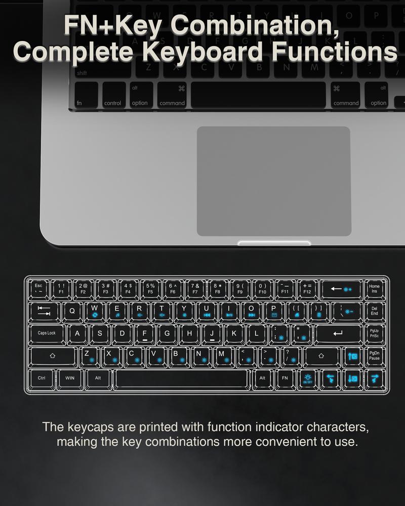 - 60 Percent Keyboard: The 60% compact layout is one of the most popular keyboard sizes currently on the market. SK968 68-key keyboard saves more space on your desktop while retaining the arrow keys necessary for gaming. Most keyboard functions can be easily achieved through the FN and key combination
