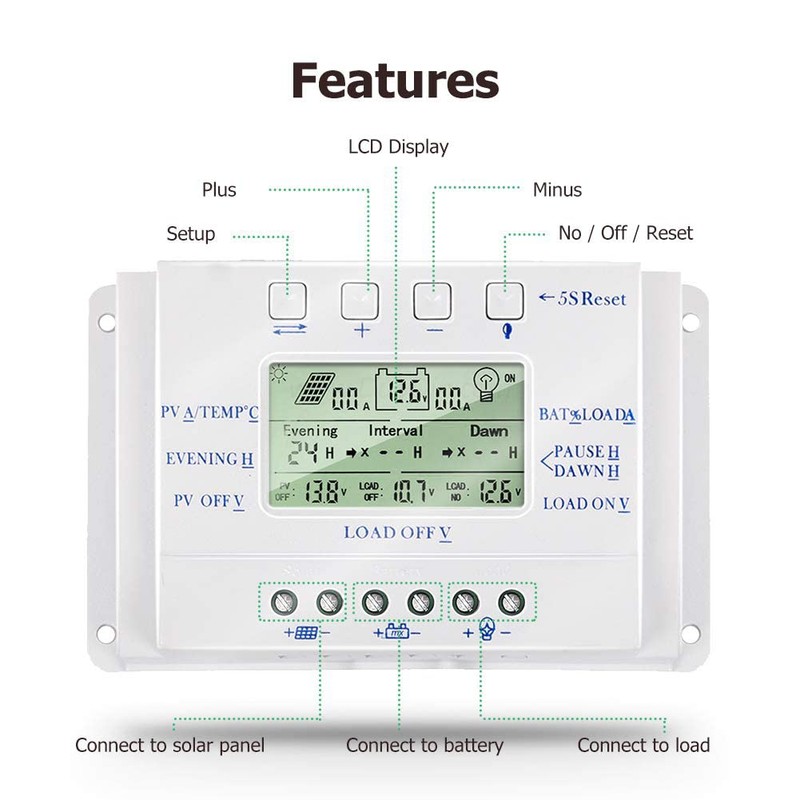 • ★PWM + MPPT Charging Mode: High quality compatible MPPT + PWM charge controller with automatic temperature compensation, adjustable charge/discharge control parameters.